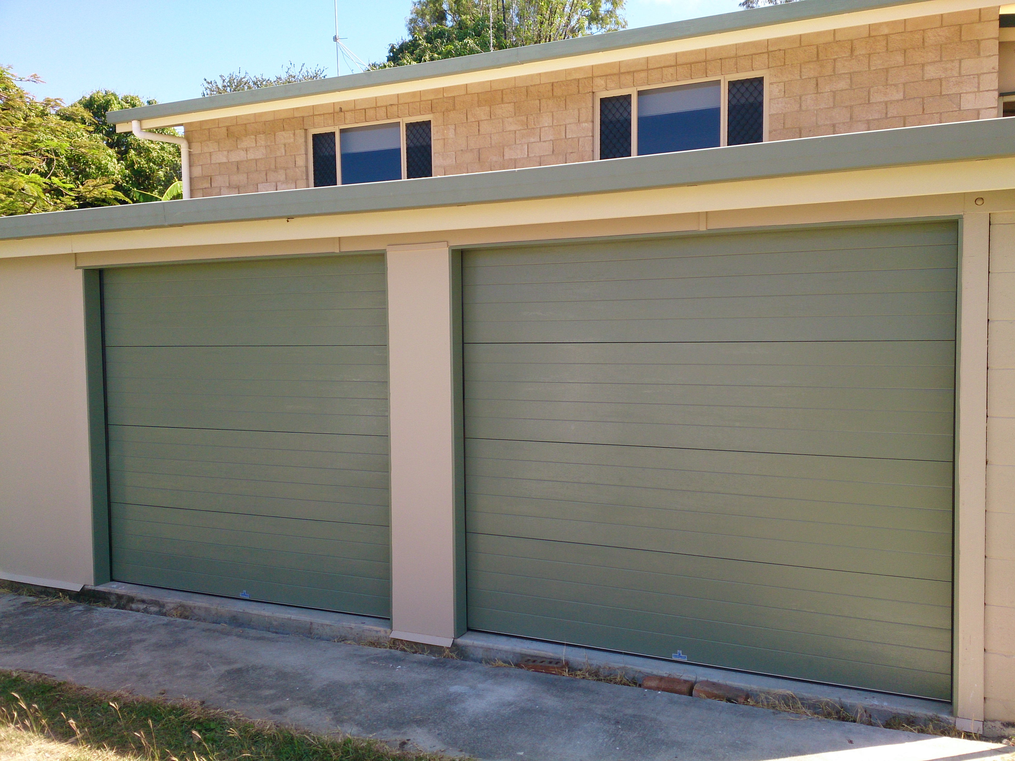 Sectional Panel Lift Doors come in a number of standard designs and colorbond colours that can be manufactured to fit just about any opening. This style of door (opposed to the roller door) when opening travels along tracks parallel with the ceiling. If you would like something different they can also be fabricated out of a variety of different materials like acrylic, aluminium and timber. The modern exterior design of the doors makes them a very popular addition to any home.
